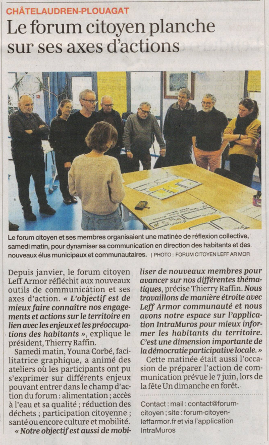 L’association « Forum Citoyen Leff Ar Mor » est en permanence à la recherche de nouveaux adhérents pour le renouvellement normal des membres et pour l’apport d’idées nouvelles destinées à favoriser l’intégration citoyenne et développer « le bien vivre » sur le territoire.